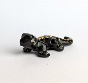 Gekkos sind nicht nur nachtaktive Echsen, die man oft in tropischen Regionen findet, sondern auch sehr faszinierende Tiere. Sie haben die Fähigkeit zu klettern und ihre Hautfarbe an die Umgebung anzupassen. Unsere Figur zeigt einen Gekko in tiefem Schwarz mit goldenen Sternen, die ihm einen besonderen Charme verleihen.